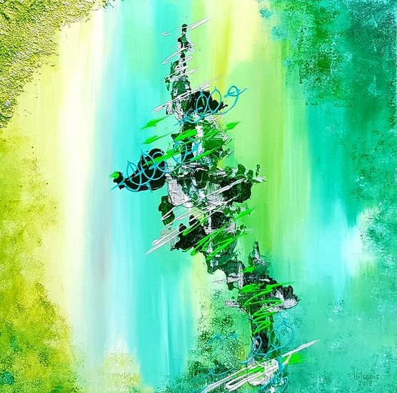 "Army of me" is een kunstwerk waarbij ik een andere benadering kies dan bij de vorige 4 abstracte werken. Het vormt de overgang tussen die serie naar het werkstuk waarmee ik momenteel bezig ben. Ik heb het werkstuk opgebouwd uit lagen waarbij ik niet alleen penseel en paletmes gebruik maar ook een spons. Het schilderij bestaat voornamelijk uit groentinten en geeft een inkijkje van waar ik op dit moment sta. Het gaat over mijn ikken, mijn diverse gezichten, wat je ontmoet is als het ware een "Army of me"