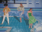 1987Drie vrouwelijke modellen aan de rand van een zwembad.