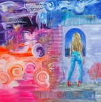 2022"Rear Window" is een realistisch schilderij van een mooie jonge vrouw, geschilderd vanuit een laag standpunt. Zij is ook te zien op het kunstwerk "Temptation" uit 2020. Omdat ik gekozen heb voor een laag standpunt gaat de aandacht meteen uit naar haar prachtige billen. Maar het totaalbeeld waarbij haar intense blik, starend in de sterrennacht ook bepalend is voor de sfeer op dit doek, mag er zeker zijn. Het is het tweede doek in een serie van minstens drie werkstukken.