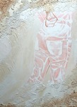 2017"Passion" laat een fragment zien van een vrouwenlichaam. Zij is gehuld in witte kleding die drijfnat aan haar lichaam plakt.Het gehele schilderij ademt een licht-erotische sfeer uit. Natte kleding prikkelt de fantasie meer dan direct naakt.De kleurstelling is dit keer bewust gedempt gehouden in wit en beige-tinten. Ik heb gebruik gemaakt van structuurmaterialen.